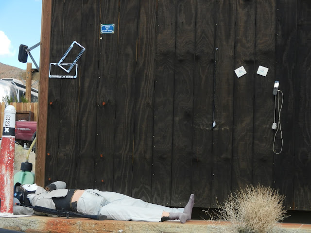 I say Darwin is a "semi" ghost town because it was once home to over 3500 people and was the largest town in the county. Today there are only 50 people living there, none under 25 years old. It was an isolated mining town in its heyday but now it appears to be home to what I call "rugged individualists", people that seem to love its quirky rundown ambiance. We only saw one person the entire time we drove its streets and he was sitting high up in what looked like a glass turret behind a ramshackle house. We got the distinct impression he was watching us...I didn't take a picture of him, it didn't look like he would appreciate it.