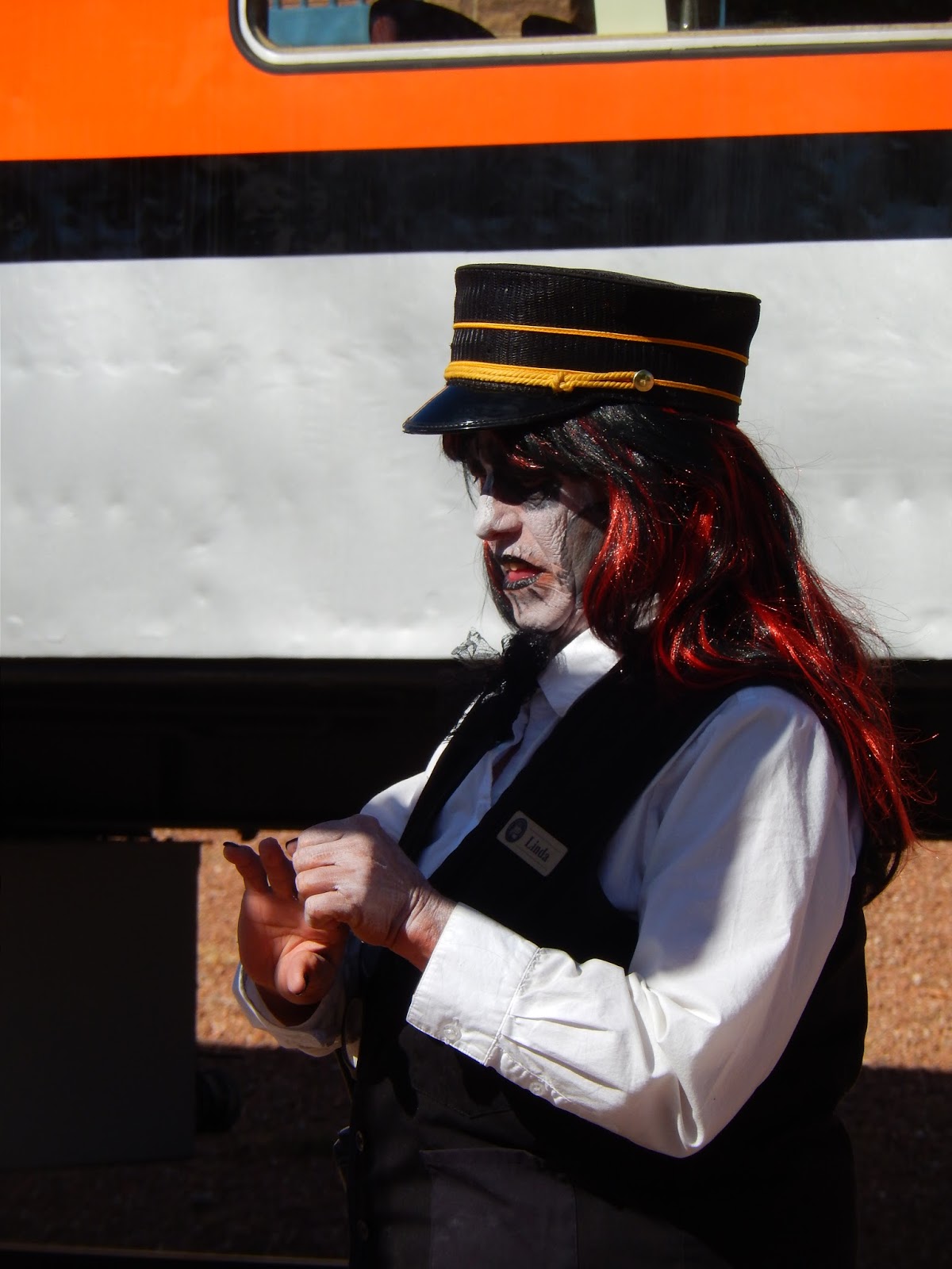 Evidently this is Halloween weekend (who knew that was a thing.....) so our train was decorated for the holiday as were the workers.....