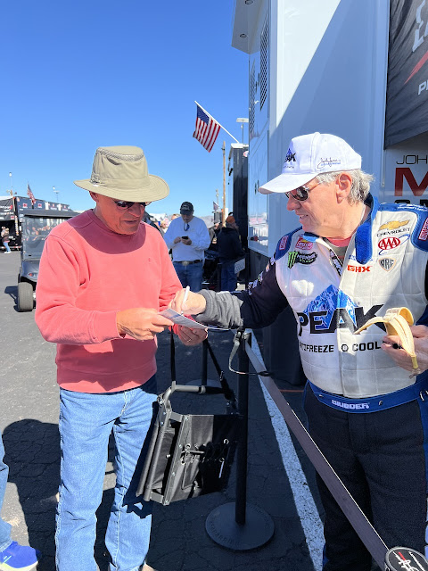 | Legend, 74 year old John Force signing an autograph before racing down the track at more than 300 mph! |