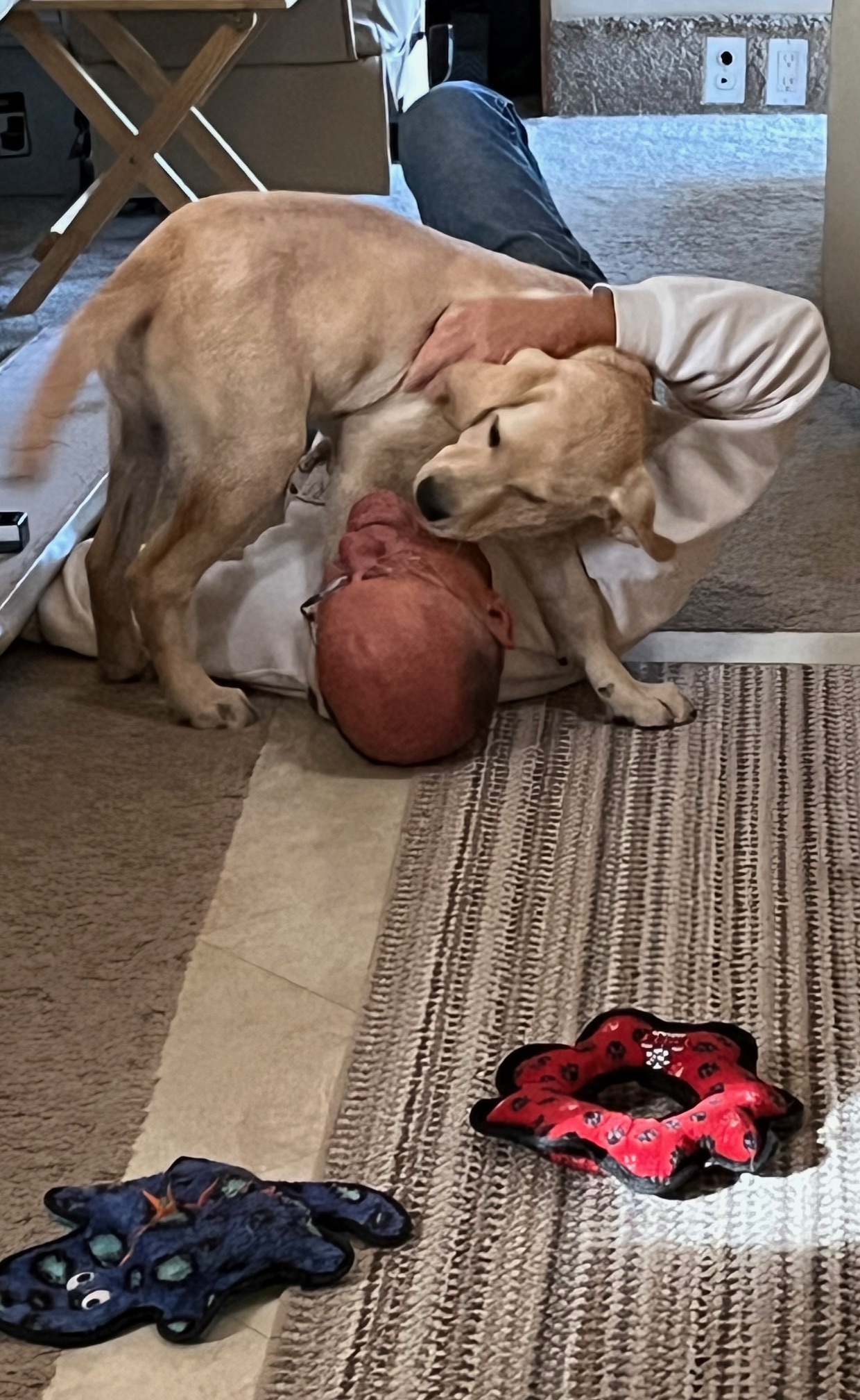 Mostly, he's just being a puppy and enjoying life. That's part of growing into a good adult too. He does love to help vacuum though. Lucky Dave